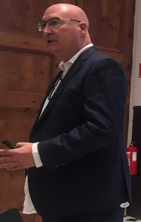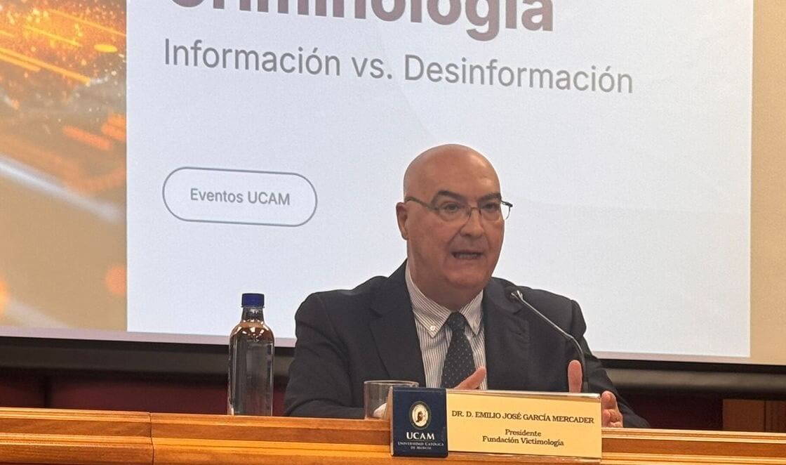 El Presidente de la Fundación de Victimología, Emilio José García Mercader, durante su ponencia en las Jornadas de Criminología «Información – Desinformación», organizadas por el Departamento de la UCAM.