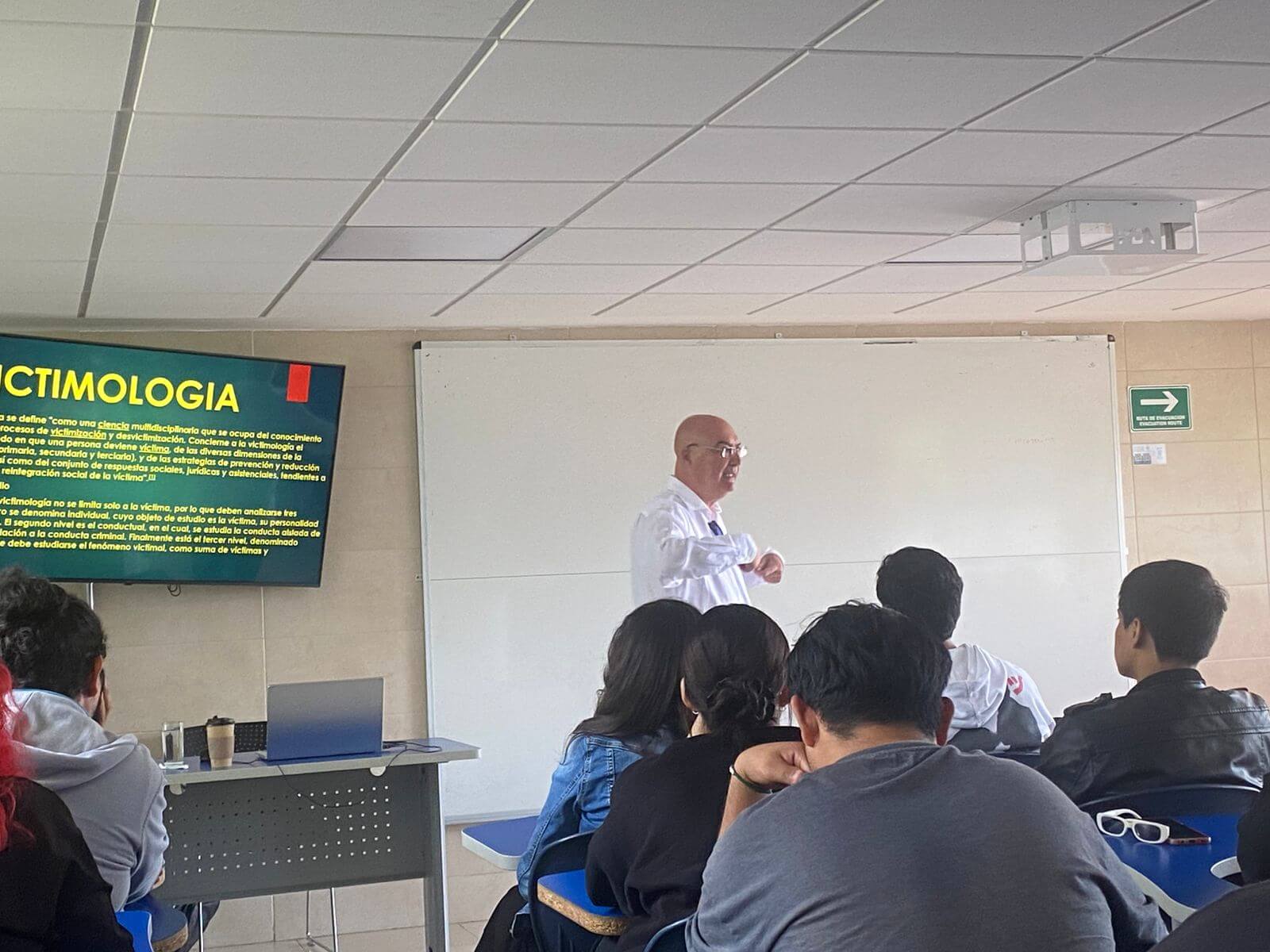 Clase de Victimología impartida por Emilio José García Mercader a los alumnos de Derecho de la Universidad de Guadalajara (Cusur), (México).