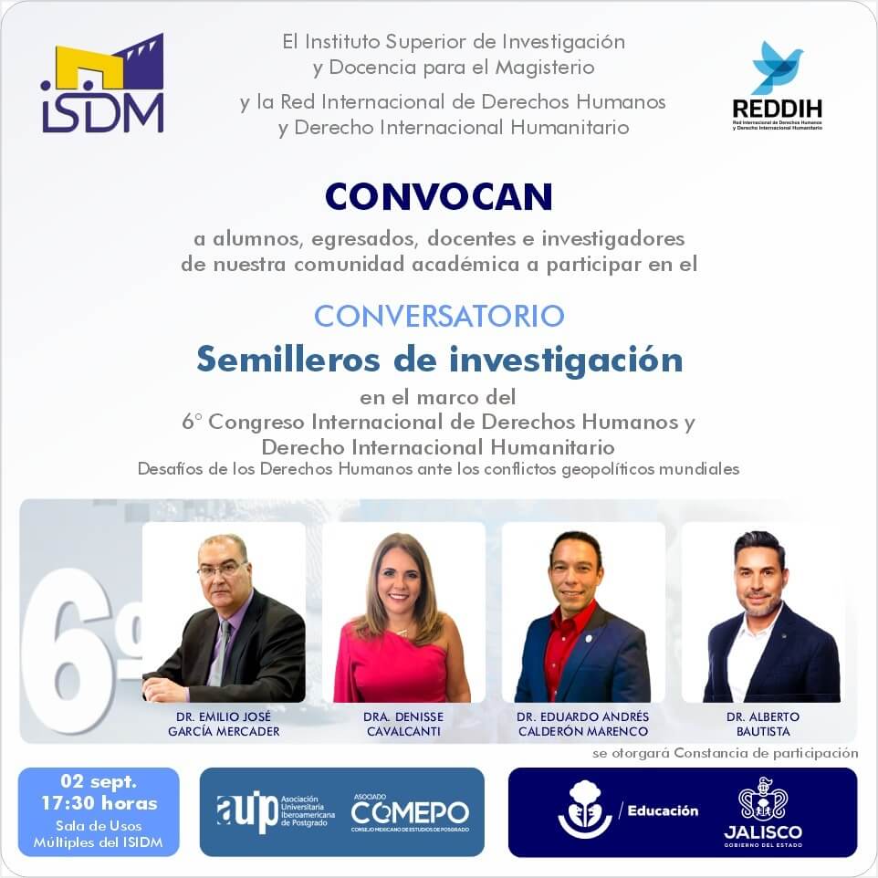 El Instituo Superior de Investigación y Docencia para el Magisterio y la Red Internacional de Derechos Humanos y Derecho Internacional Humanitario organizaron el Conversatorio «Semilleros de Investigación». El acto contó con la presencia de Emilio José García Mercader junto con excelentes amigos y profesionales.